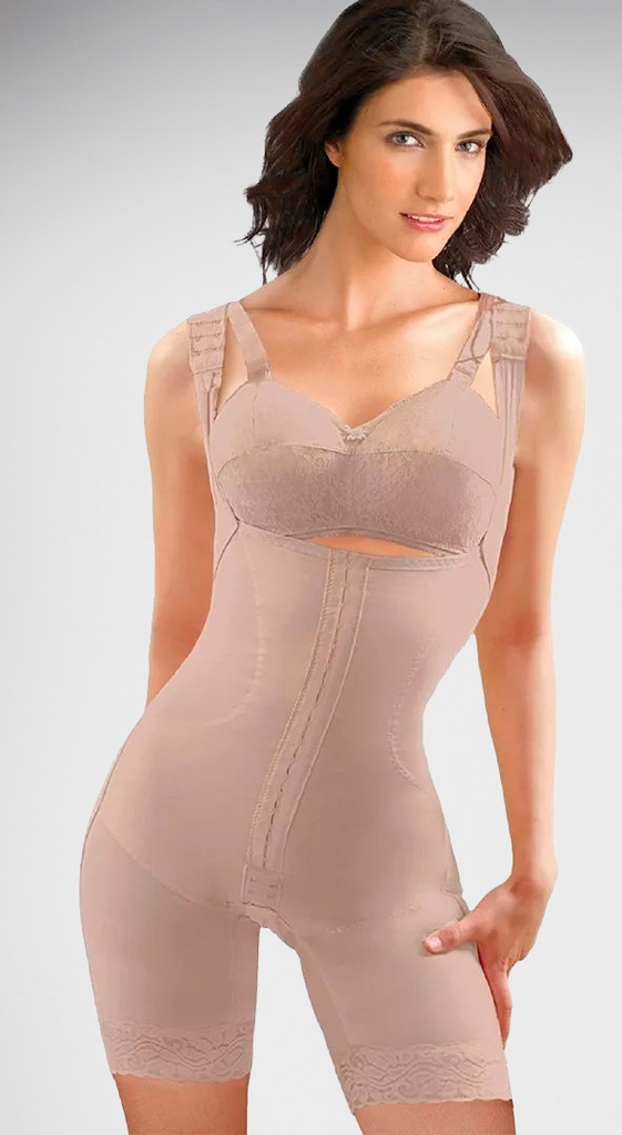 El Body Largo Confort de Kisha proporciona un ajuste integral al cuerpo, manteniendo el pecho hacia adelante y los hombros ligeramente hacia atrás, mejorando la postura y aliviando los hombros del peso de los senos. Cuenta con un novedoso panel frontal que comprime el abdomen y el vientre bajo, afinando la cadera y el talle. Además, realza los glúteos y reduce las chaparreras, dando como resultado una silueta estilizada y esbelta. Este body es largo, lo cual llega hasta arriba de la rodilla lo cual lo hace especial para usar debajo de pantalones y con vestidos largos ya que si eres de pierna gordita no hara que tus piernas se junten y hagan un roce y te lastimes, es especial para esa ocasion especial. Cuidados: *Lavar a mano. *No exprimir para que no pierda la forma original de la fibra y secar a la sombra y al reverso. *Recomendamos lavar con Jabón ""zote"" o ""lirio"". *No usar suavitel, para no dañar la prenda. *No lavar en lavadora ni meter a secadora. Garantías: 1. Garantía de Talla Si la prenda no te queda bien, ¡te la cambiamos de talla! Solo háznoslo saber durante los primeros 5 días desde la recepción del producto. El cliente deberá cubrir los costos de envío. Para que esta garantía sea válida, es necesario incluir un video que demuestre que la prenda está en buen estado. 2. Garantía de Satisfacción Si dentro de los primeros 2 días de recibir el producto no estás satisfecho, contáctanos y te daremos la opción de reemplazarlo por otro producto diferente. Para aplicar esta garantía, es necesario enviar un correo explicando por qué no te gustó el producto. El cliente deberá cubrir los costos de envío. 3. Garantía de Fábrica Si el producto tiene un defecto de fabricación (como un cierre dañado, ganchos de ajuste rotos, o descosidos) durante los primeros 15 días, te lo reemplazaremos por uno nuevo y nosotros cubriremos los costos de envío. El cliente deberá enviar el producto defectuoso y nosotros proporcionaremos la guía de envío. 4. Garantía de Envío y Entrega Envío gratis con una compra mínima de $3,000. Envío económico por $100 con una compra mínima de $1,000. Para compras menores a $1,000, el cliente deberá cubrir el costo del envío. Plazo de entrega: 5 días hábiles. "